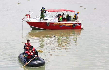 Lực lượng cứu hộ triển khai tìm kiếm thi thể nạn nhân trên sông Đồng Nai. Ảnh: XN