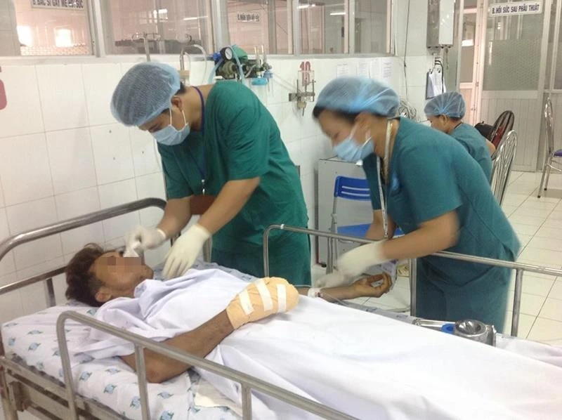 Bệnh nhân tên NTT, 29 tuổi, ngụ Suối Dây, huyện Tân Châu, Tây Ninh. Anh nhập viện vào chiều ngày 2-4 với tình trạng khá nghiêm trọng: dập nát bàn tay phải, đốt 3 ngón trỏ bị đứt lìa. Bệnh nhân có nhiều vết thương trên mặt, ngực và cổ.