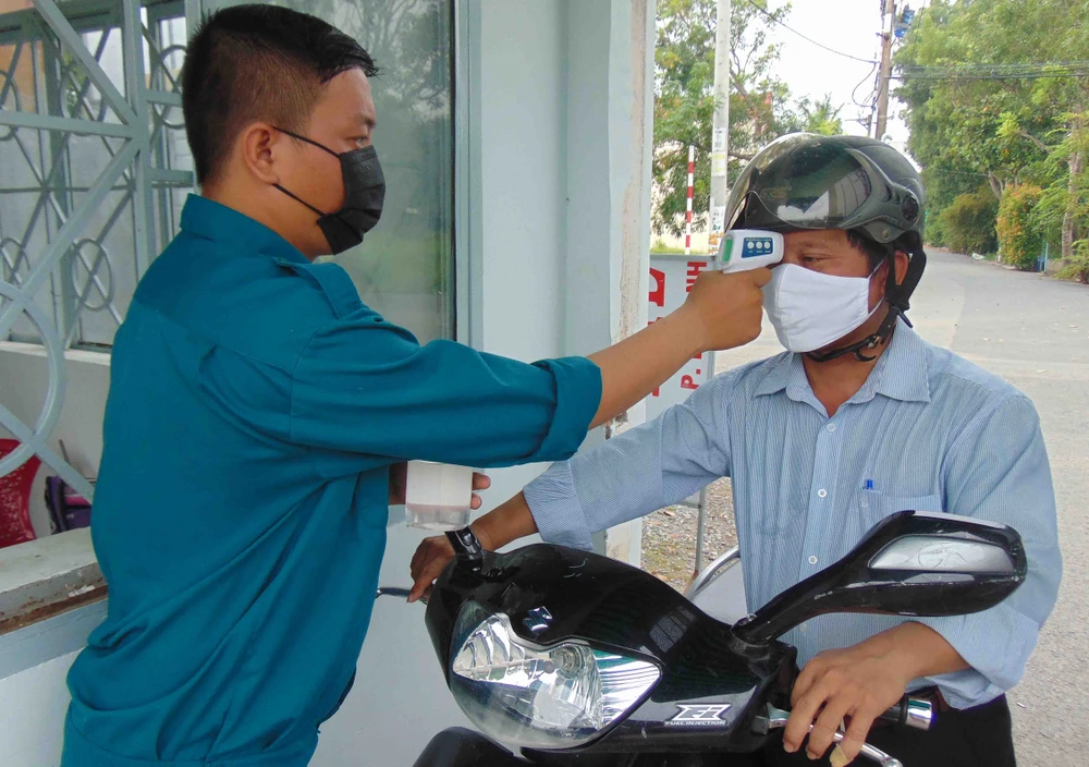 Dân đến UBND xã Nhị Bình, Hóc Môn, TP.HCM liên hệ công việc được đo thân nhiệt. Ảnh: TRẦN NGỌC