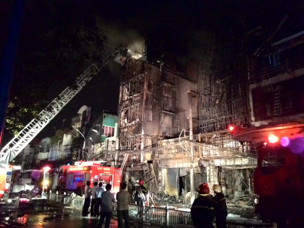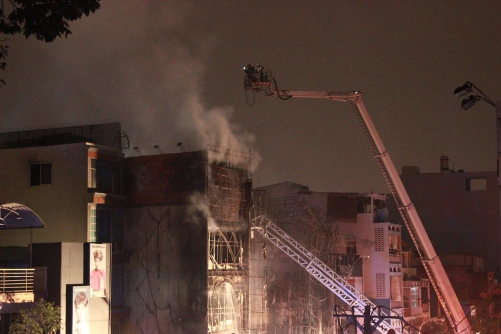 22 giờ 50, dù đã khống chế được ngọn lửa nhưng khói vẫn bốc lên cuồn cuộn. Xe thang vẫn xịt nước từ trên cao xuống. Cơ quan chức năng tiếp tục phong tỏa tại khu vực rộng hàng km vuông, từ đầu đường Lý Chính Thắng, Kỳ Đồng, Lê Văn Sỹ, Trần Quốc Thảo và toàn bộ các đường xung quanh.