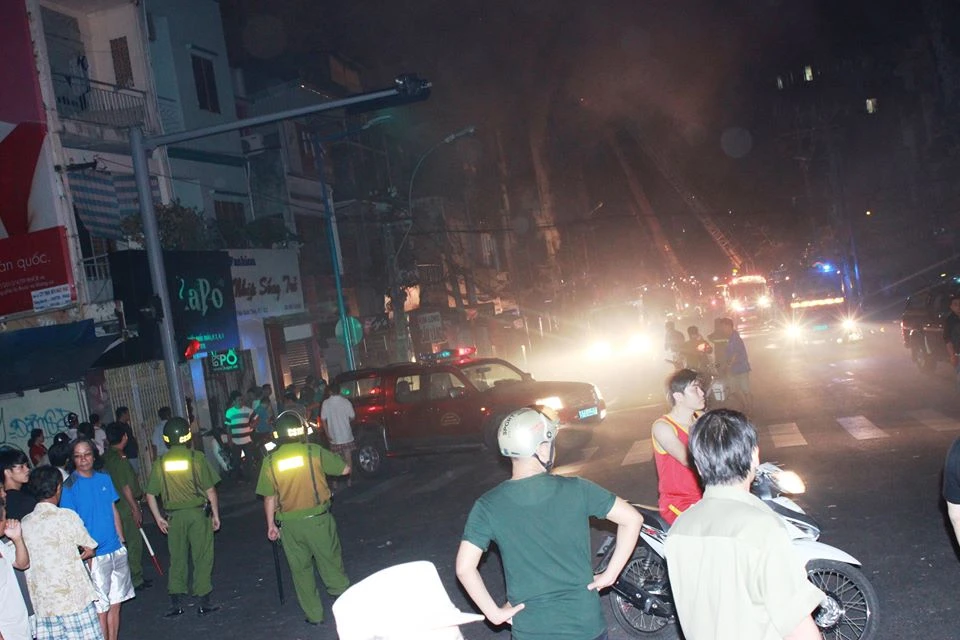 Cùng thời điểm này, ông Hiệp, trưởng công an quận 3 cũng đã có mặt, trực tiếp chỉ huy, triển khai các biện pháp bảo vệ an ninh trật tự quanh khu vực xảy ra đám cháy.