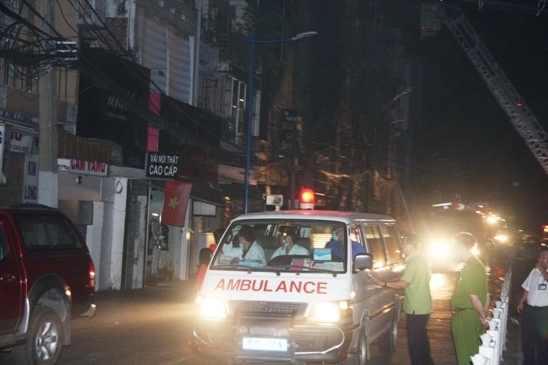 1 giờ sáng 31-12, ngọn lửa đã được khống chế. Ở bên ngoài, lực lượng y bác sĩ, nhân viên y tế và xe cứu thương vẫn đang túc trực bên ngoài.