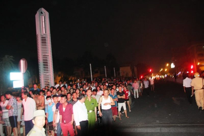 Hàng trăm người dân tụ tập xung quanh.