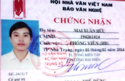 Người này xuất trình giấy chứng nhận có hình thức như thẻ nhà báo do trưởng đại diện báo Văn Nghệ tại Nha Trang (Khánh Hòa) ký, nội dung chứng nhận Mai Xuân Hữu chức danh phóng viên. Do thấy có biểu hiện nghi vấn nên ông Hải đã mời đại diện Sở Thông tin và Truyền thông và cơ quan an ninh văn hóa tỉnh đến kiểm tra.