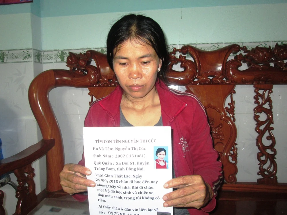 Sáng 4-11, trao đổi với Pháp Luật TP.HCM, chị Nguyễn Thị Lan (ngụ xã Đồi 61, huyện Trảng Bom, Đồng Nai) cho biết đến nay đã hơn một tháng trôi qua kể từ ngày mất tích, gia đình chị đã đi tìm kiếm khắp nơi nhưng vẫn chưa có thông tin gì về con gái mình là cháu Nguyễn Thị Cúc (13 tuổi) học lớp 8, Trường THCS Hùng Vương.