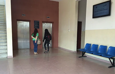 Khu vực nhà vệ sinh ở lầu bốn giảng đường B Trường ĐH Kinh tế nơi chị Q. bị tạt acid. Ảnh: TK