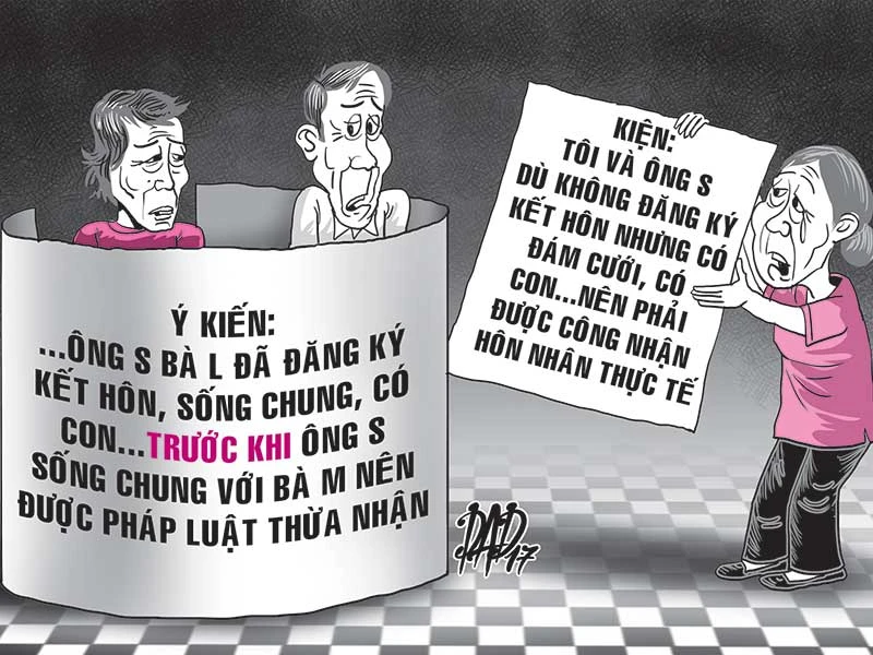 | Ba người ở chung một nhà? Đầu năm 2017, Thanh tra Sở Tư pháp TP.HCM đã làm việc với ông S. và bà M., ghi nhận nội dung ông S. thừa nhận là vào năm 1975 ông có sống chung như vợ chồng với bà L. (có con chung). Năm 1979, ông cưới bà M. Năm 2007, bà L. quay lại nhờ đăng ký kết hôn đi xuất cảnh. “Chúng tôi cùng ở chung nhà với nhau (tôi, bà L., bà M.) tại quận Tân Phú” - ông S. trình bày. |