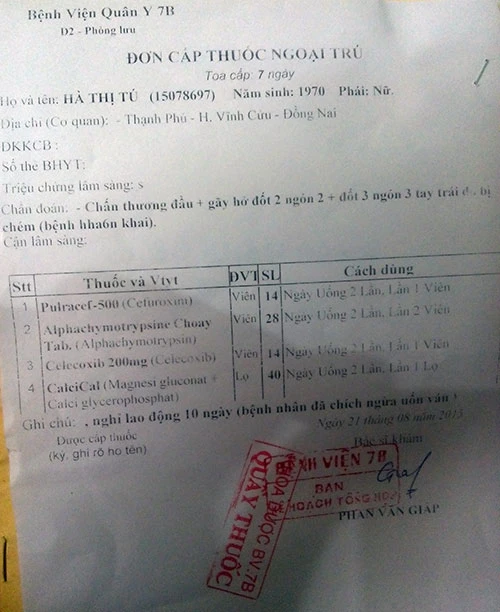 Giấy chẩn đoán vết thương của chị Tú