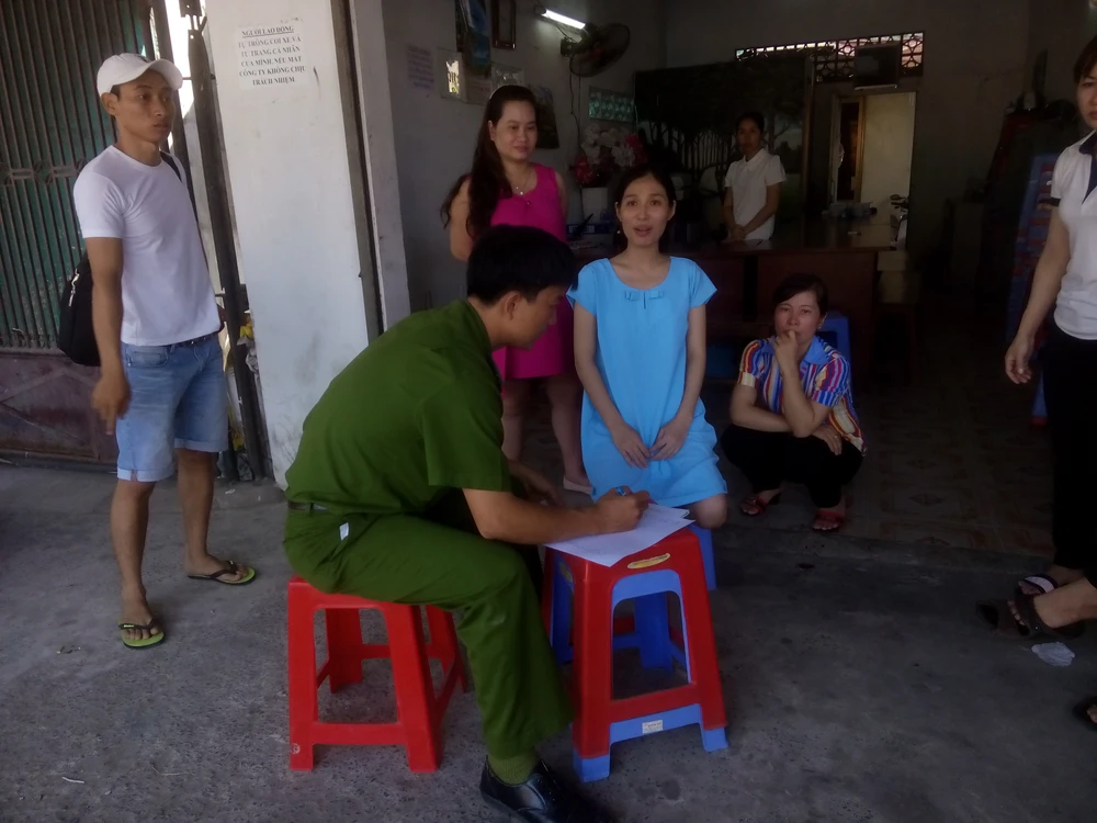 Công an đang lấy lời khai của những người liên quan. Ảnh: TIẾN DŨNG