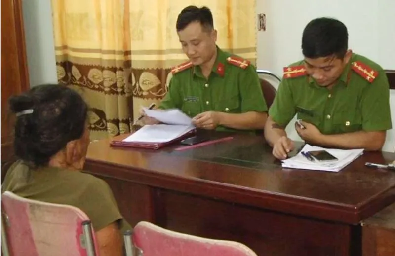 Bà T. bị triệu tập lên cơ quan công an để làm rõ vụ cháy rừng ở xã Diễn Lộc. Ảnh: NTV.