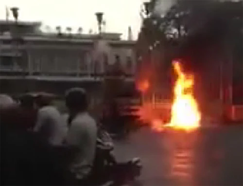 Ảnh chụp từ clip quay lại cảnh tự thiêu