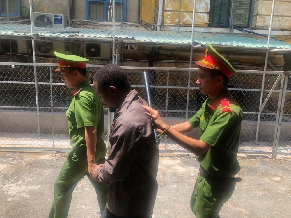 Daniel Chiedozie Nwachukwu được dẫn giải về trại giam.