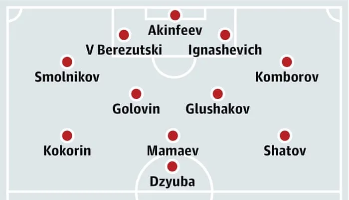 Trong sơ đồ tuyển Nga thì Kokorin và Mamaev đều chơi tấn công