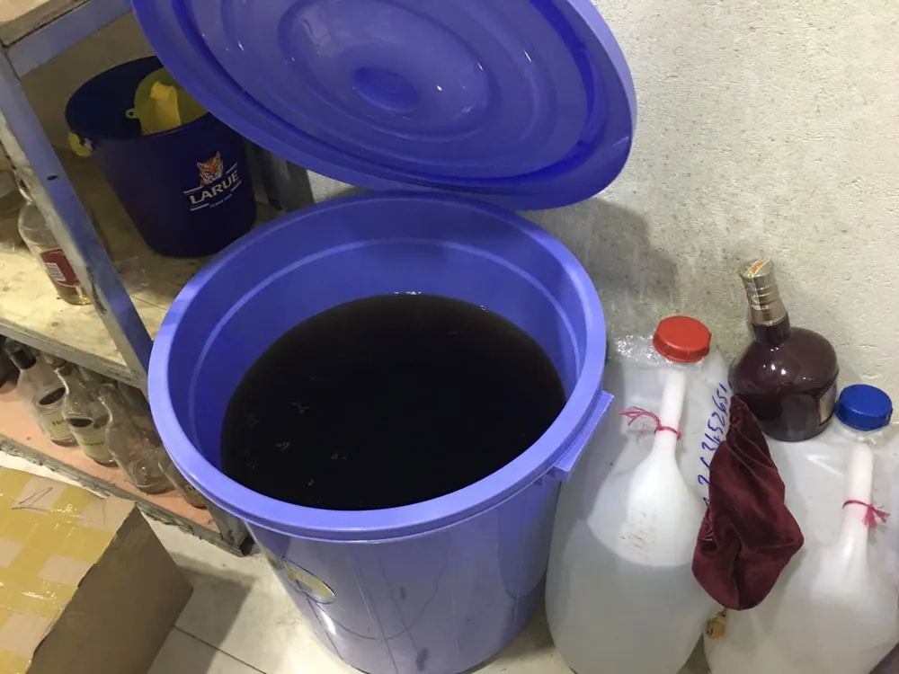Thùng pha chế rượu được phát hiện. Ảnh: AC