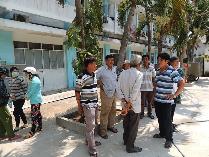 Những người thân trong gia đình của sản phụ Tường Vi, chờ cơ quan pháp y giải phẩu tử thi tại nhà đại thể của bệnh viện Đa khoa Nguyễn Đình Chiểu - ảnh: T.Phúc
