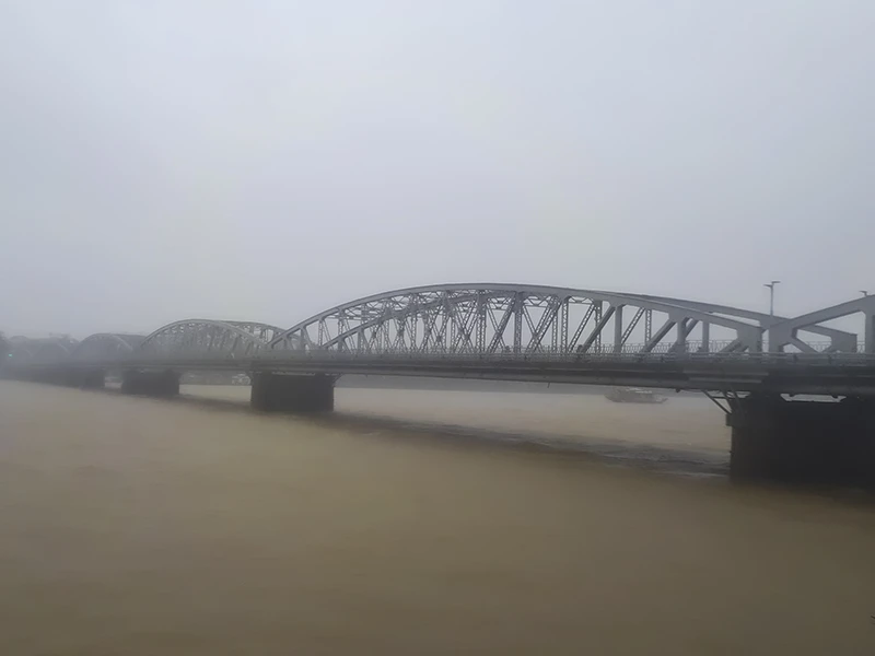 Nước trên sông Hương đoạn qua TP Huế vào sáng ngày trưa 7-10. Ảnh: NGUYỄN DO