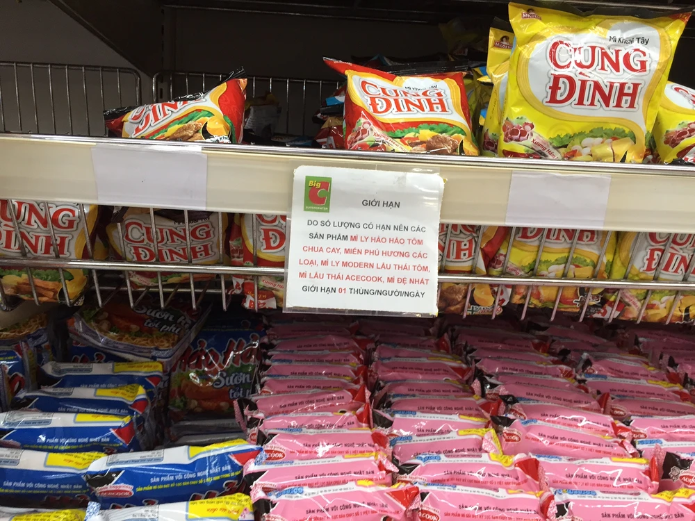 Siêu thị Big C cũng ghi nhãn giới hạn mua mì, miến, phở, các loại...
