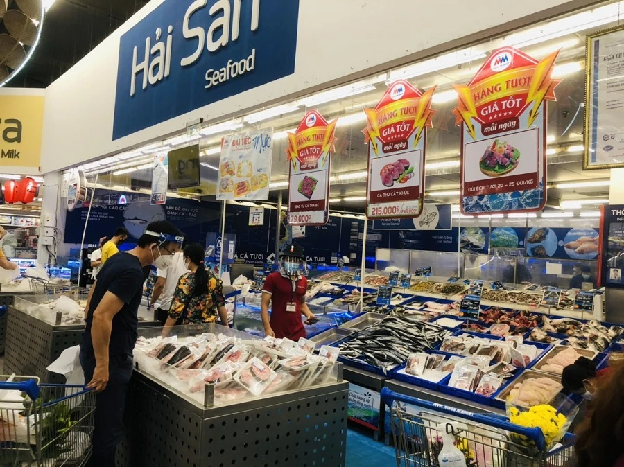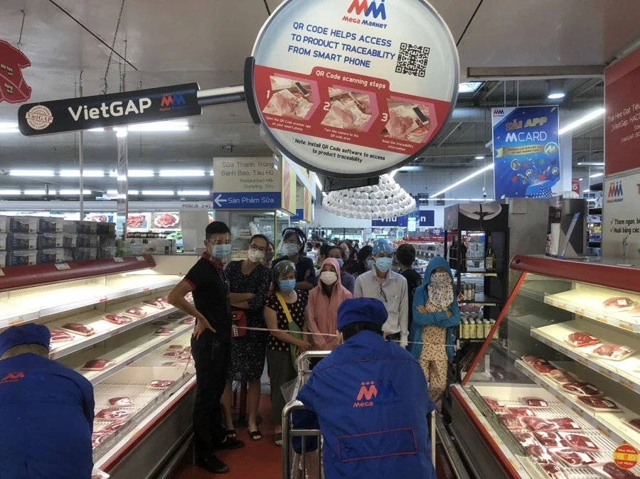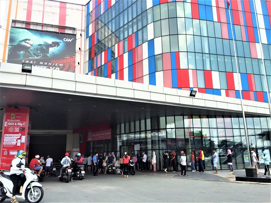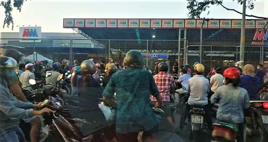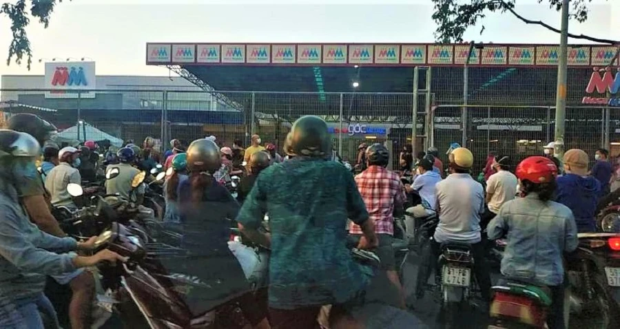 Các siêu thị MM Mega Market An Phú thành phố Thủ Đức, Aeon Tân Phú lượng khách đến mua sắm cũng đông đột biến. Hàng hóa có lúc thiếu cục bộ nhưng nhìn chung rất dồi dào.