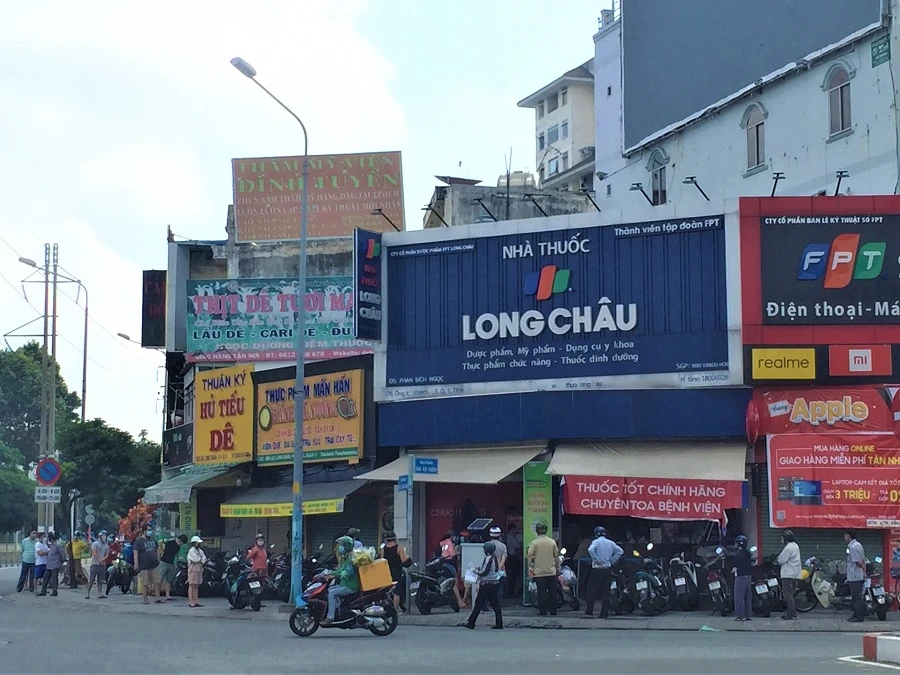 Sáng 21-8, ghi nhận thị trường cho thấy bên cạnh các siêu thị, cửa hàng tiện lợi, điểm bán thực phẩm tươi sống có rất đông người dân xếp hàng mua sắm thì các điểm bán gạo, trứng gia cầm, thuốc tây cũng trong cảnh tương tự.