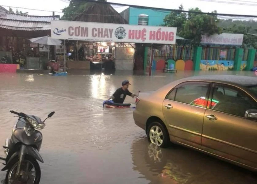Theo ghi nhận, toàn bộ tuyến đường khoảng 3 km đã bị ngập nặng, các các phương tiện bị chìm trong nước, người dân không thể di chuyển. Nước ngập cuốn đi nhiều vật dụng của người dân, hiện người dân phải di chuyển đồ đạc trong nhà lên cao, để tránh bị hư hại.