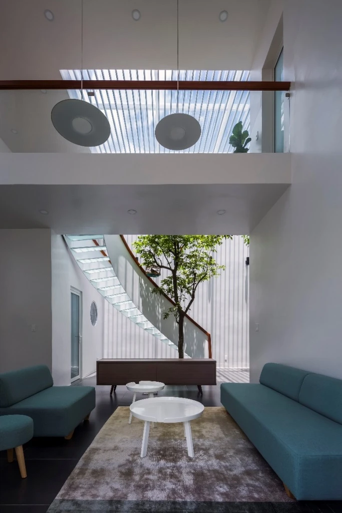 Việc đan cài các không gian mở theo diện tích từ trên xuống thường kết hợp với giếng trời và giao thông dọc là cầu thang góp phần nới rộng không gian, mang lại nhiều khoảng trống nhất có thể.