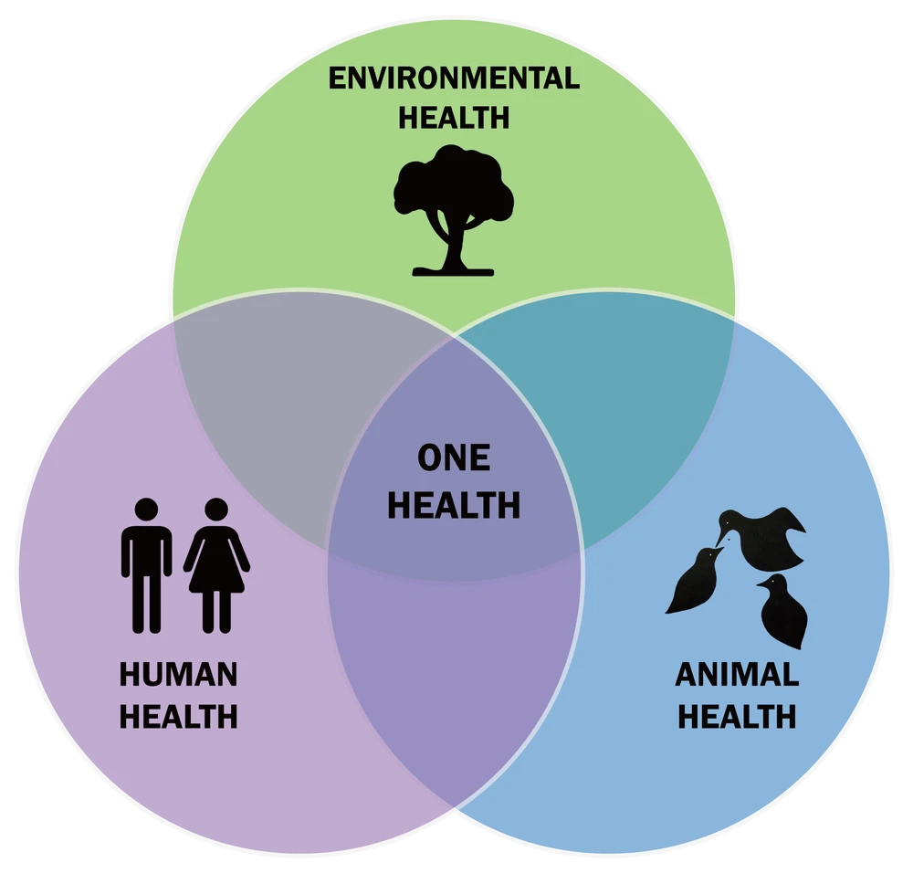 Cụ thể hơn, Một Sức khỏe là sự thừa nhận rằng tất cả các hoạt động và thói quen của con người đều có tác động đến một hệ thống sinh thái chung. Ví dụ, việc mở rộng dân số và phá rừng của con người có thể dẫn đến nguy cơ động vật hoang dã truyền bệnh sang người.