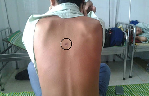 Vết đạn cao su trên lưng em Nhân. Ảnh: HN