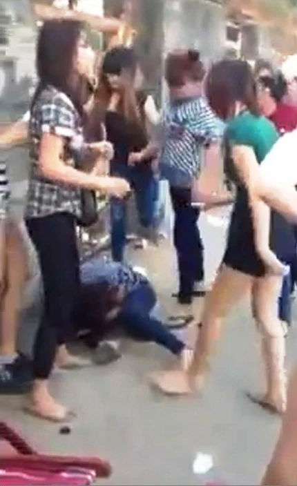 Trên đoạn clip, nhóm người hành hung toàn là các cô gái trẻ đã dùng đạp chân vào đầu, mặt, túm kéo tóc nạn nhân.... Những người này vừa đánh vừa chửi những lời hết sức tục tĩu.