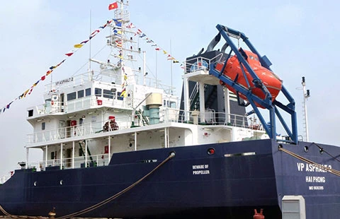 Tàu VP Asphalt 2 trong lễ bàn giao cho chủ tàu Công ty CP Vận tải xăng dầu VIPCO vào tháng 3-2013.