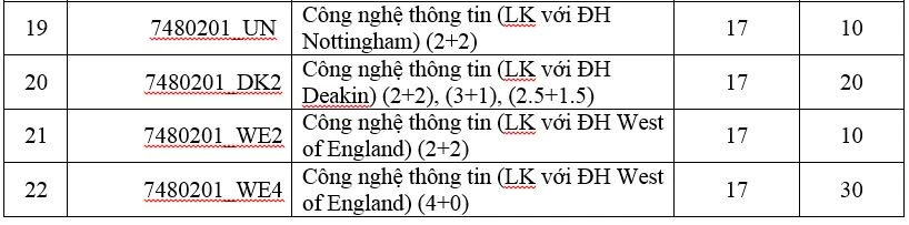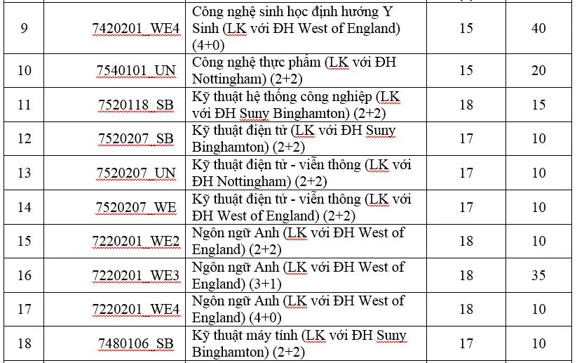 Theo đó, trường sẽ tuyển sinh bổ sung cho 22 ngành. Trong đó có sáu ngành do trường cấp bằng với 150 chỉ tiêu, còn lại là liên kết đào tạo với nước ngoài với 480 chỉ tiêu.