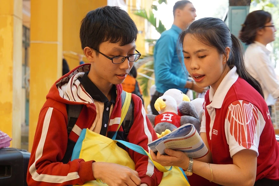 Thí sinh tìm hiểu thông tin tuyển sinh của Trường ĐH Quốc tế Hồng Bàng. Ảnh: NTCC