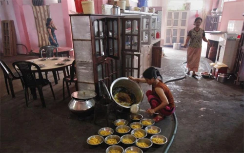 Dù gia đình đông người nhưng các bữa ăn đơn giản nên khu bếp, phòng ăn cũng rất sơ sài.