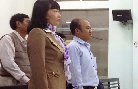 Đại diện theo ủy quyền của chủ tịch UBND tỉnh Khánh Hòa (nữ) và đại diện của chủ tịch UBND thị xã Ninh Hòa (đứng đầu) tại phiên tòa hành chính phúc thẩm lần một. Ảnh: CTV