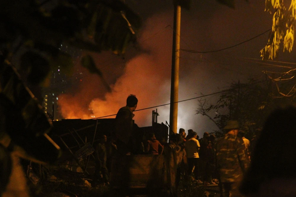 Theo các nhân chứng cho hay, vào thời điểm trên, nhiều người dân thuộc khu vực ngõ 80, phố Đại Linh, phường Trung Văn, Nam Từ Liên, Hà Nội bất ngờ phát hiện một ngọn lửa đỏ rực trời kèm theo khói mù mịt từ khu nhà xưởng chứa đồ nhựa.