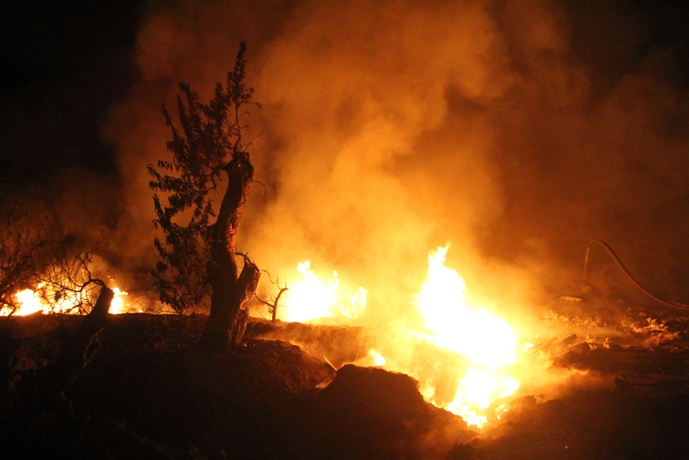 Ngọn còn cháy lan sang cả một góc vườn đào