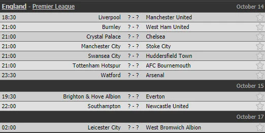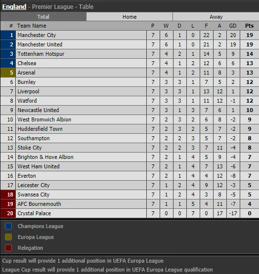 Bảng xếp hạng sau 7 vòng đấu ở Premier League: