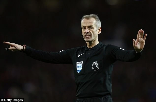 Martin Atkinson sẽ bắt chính trận Man. City gặp Man United trên sân Etihah.