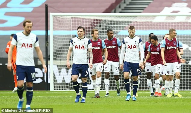 Sự thất vọng của cầu thủ Tottenham ở trận thua West Ham 1-2. ẢNH: REX