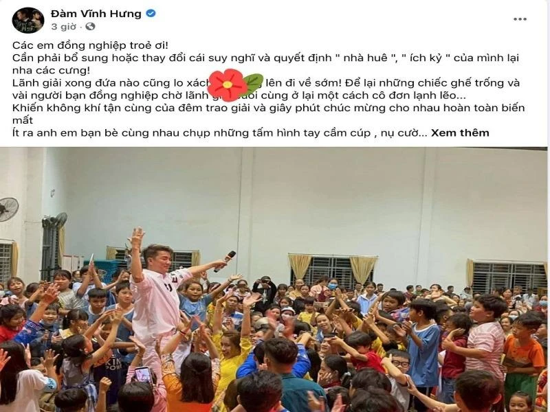 Ca sĩ Đàm Vĩnh Hưng đã có những chia sẻ chân tình nhắn gửi tới các đồng nghiệp trẻ. Cách chia sẻ hài hước, dí dỏm nhưng từng câu từng chữ rất "thấm" khiến nhiều người phải suy ngẫm.