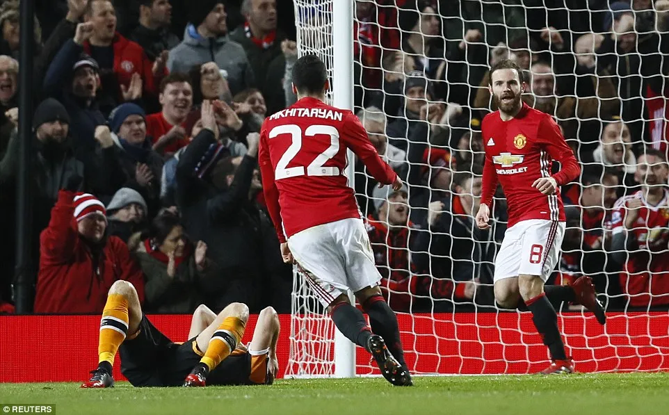 Ngay đầu hiệp 2, MU đã có bàn thắng nhờ pha dàn xếp tấn công hợp lý. Phút 56, Pogba mở bóng thoáng cho Valencia tạt vào trong cho Mkhitaryan đánh đầu chuyền cho Mata đệm bóng cận thành mở tỉ số 1-0 cho MU.