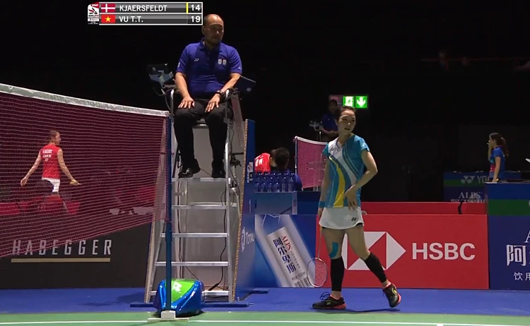 Tình huống sai sót diễn ra khi tỉ số đang là 14-19 nghiêng về tay vợt Việt Nam, Kjaersfeildt giao cầu lệch ô nhưng trọng tài vẫn công nhận điểm số cho đối thủ người Đan Mạch. Phải mất một lúc tranh cãi và trấn tĩnh, Vũ Thị Trang mới tiếp tục trở lại trận đấu và giành chiến thắng suýt sao 21-19 ở set một.