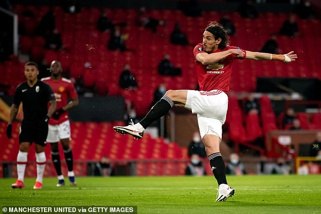 Cavani vô-lê giúp MU mở điểm chi sau 6 phút bóng lăn. Ảnh: Getty Images.
