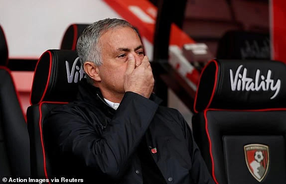 Bên ngoài sân, HLV Mourinho bực bội ra mặt trước màn trình diễn vô cùng tồi tệ của các học trò. Bàn thua vẫn không khiến MU thức tỉnh, họ tiếp tục chơi bóng như những kẻ nghiệp dư, chuyền sai liên tục trước sự áp sát của cầu thủ Bournemouth.