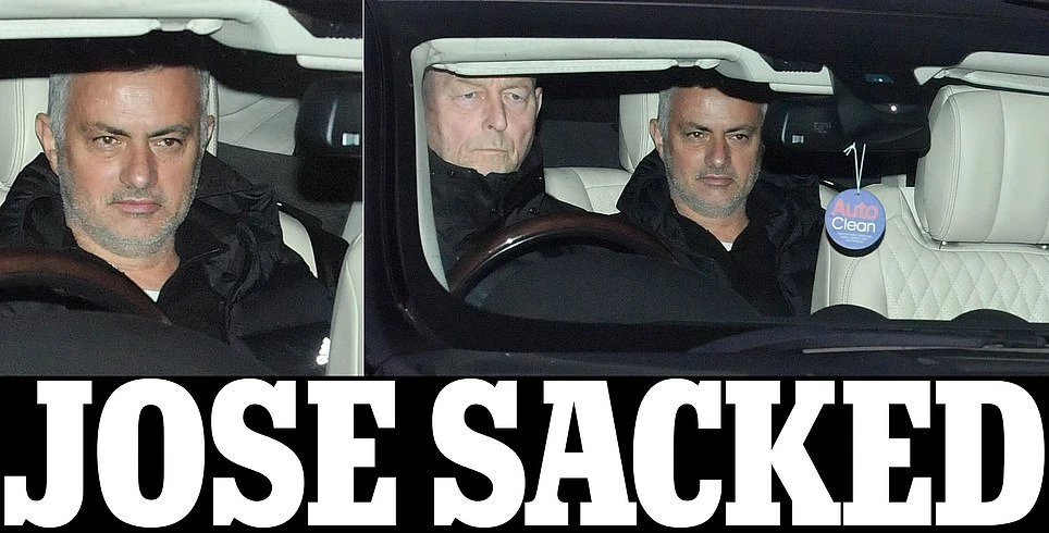Mourinho trên đường tới trung tâm huấn luyện Carrington nhận "trát" sa thải.