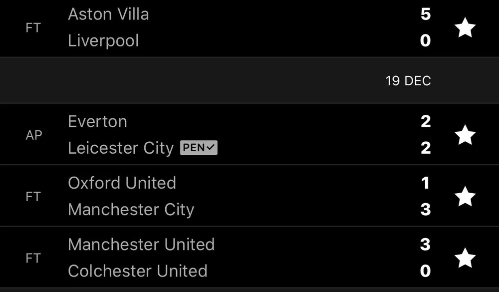 Với việc Man. City đánh bại Oxford United với tỉ số 3-1 và Man. United đánh bại Colchester United với tỉ số 3-0, trận bán kết League Cup sẽ là trận tranh tài của hai đội bóng nhiều duyên nợ tại thành Manchester. Ở cặp đấu còn lại Aston Villa sẽ đối đầu với Leicester City ở trận bán kết, “bầy cáo” đánh bại Everton trên chấm 11 m với tỉ số 4-2 sau khi hoà đội bóng phố cảng với tỉ số 2-2 sau 120 phút.