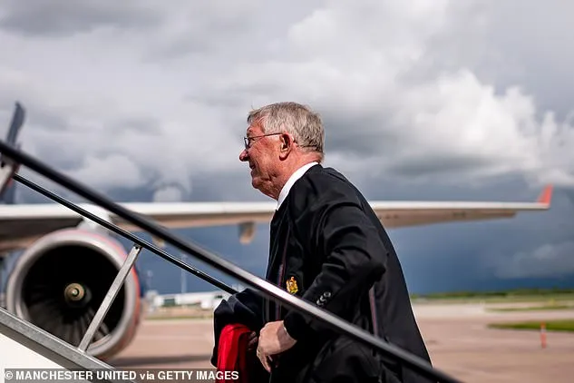 Sir Alex Ferguson rất tươi bay cùng toàn đội MU đến Ba Lan. ẢNH: GETTY