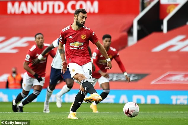 Bruno Fernandes đá tiền vệ kiến tạo nhưng là cầu thủ ghi bàn nhiều nhất cho MU mùa này. ẢNH: GETTY