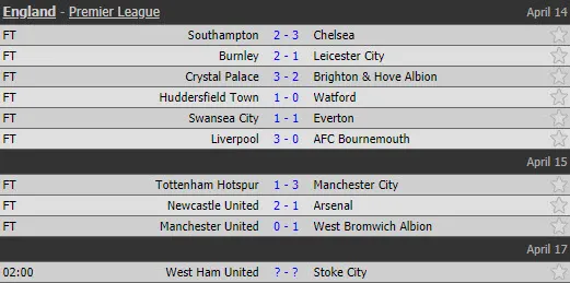 Kết quả Premier League: