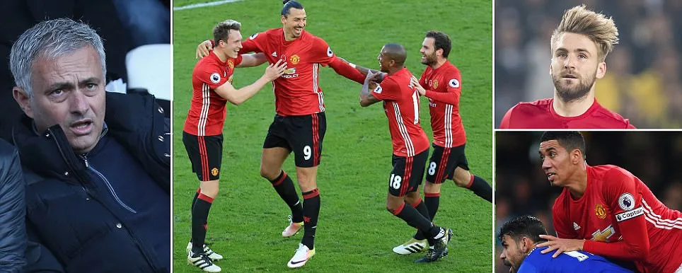 MANCHESTER UNITED (4-3-3): De Gea 6; Young 6, Jones 6.5, Rojo 6.5, Darmian 6; Carrick 7, Fellaini 6.5, Pogba 6.5 (Fosu-Mensah 90+4); Mata 6.5 (Lingard 82), Rooney 8 (Schneiderlin 89), Ibrahimovic 7.5.