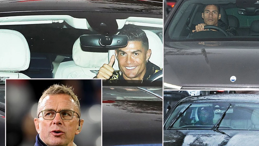 Rangnick chưa thể tiếp quản ghế HLV MU dẫn dắt các ngôi sao như Ronaldo, Varane. ẢNH: MIRROR